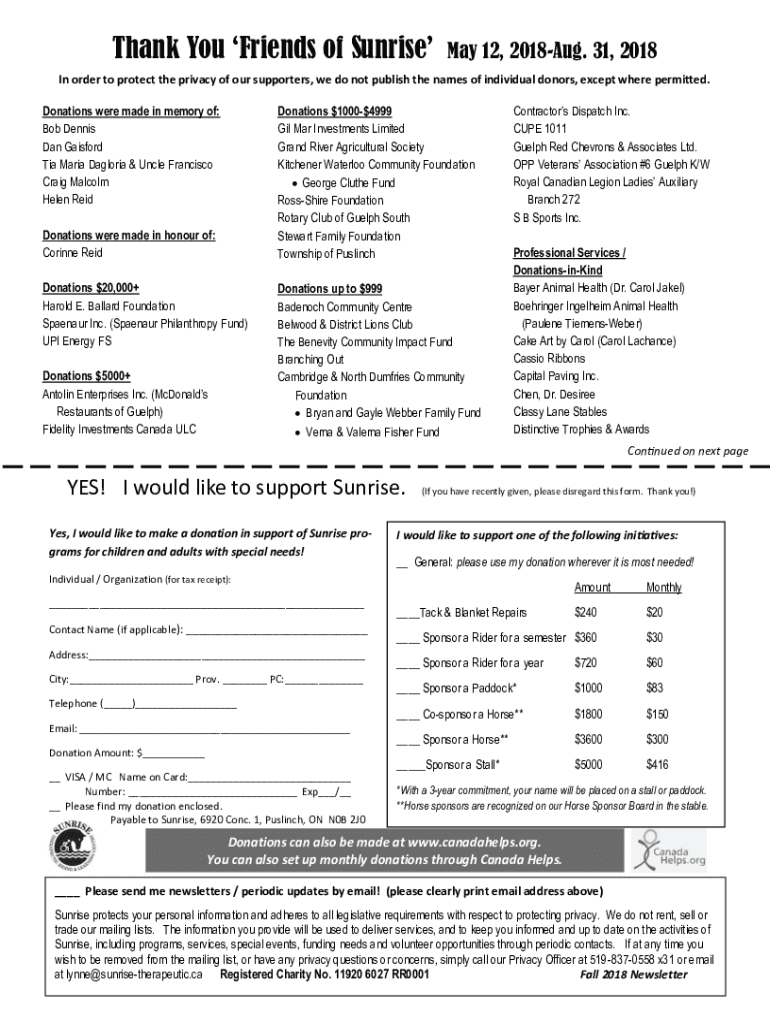 Thank You Friends of Sunrise May 12, 2018Aug. 31, 2018In order to protect the privacy of our supporters, we do not publish the names of individual donors, except where permitted. Donations were made