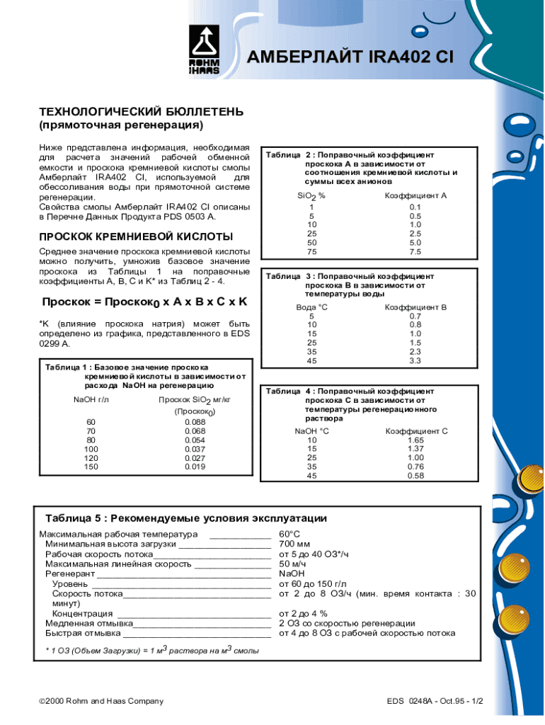 Get the free Product Data Sheet - AMBERLITE IRA402 Cl - Carbotecnia - twt mpei ac