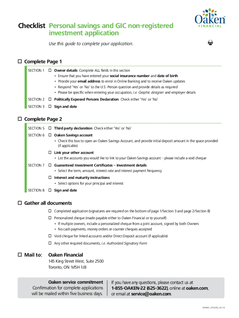 Checklist Personal Savings and GIG nonregistered investment applications this guide to complete your application. Complete Page 1SECTION 1 Owner details Complete ALL fields in this section Ensure