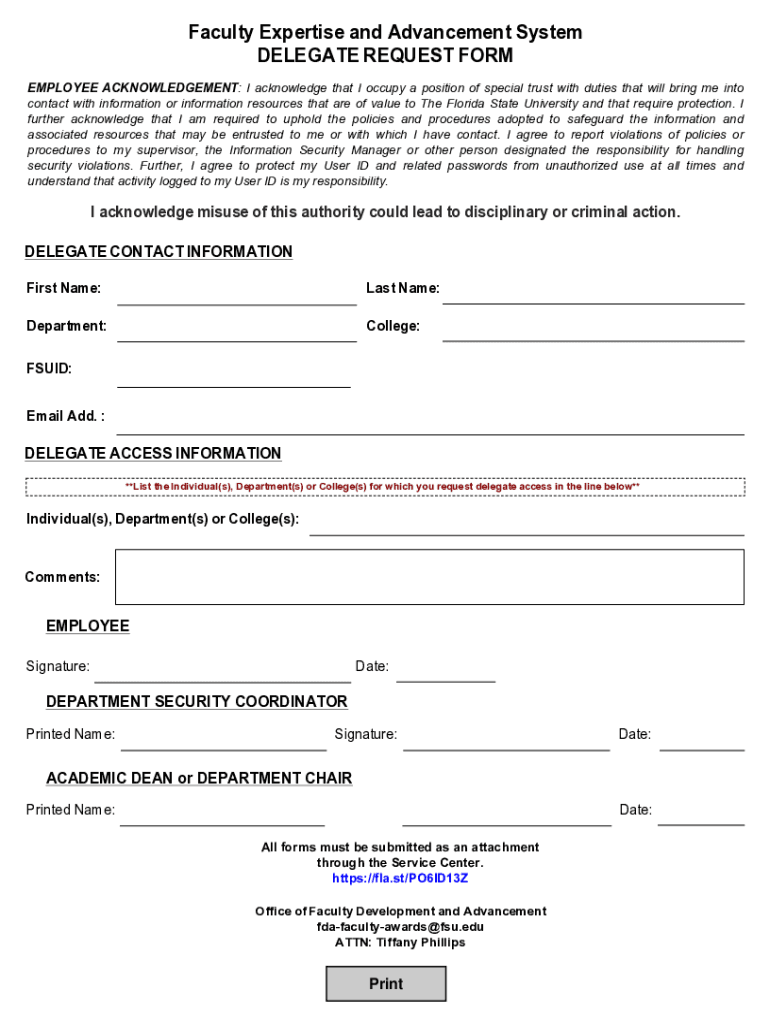 Get the free FEAS Delegate Request Form - Florida State University