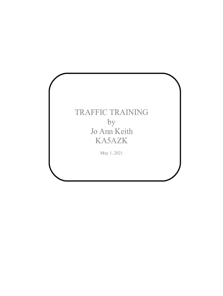 TRAFFIC TRAINING by Jo Ann Keith KA5AZK May 1, 2021ACKNOWLEDGEMENTS Compiled by Jo Ann Keith KA5AZK May 1, 2021My thanks to the following fellow Hams John Keith W5BWC For his help and support Steve