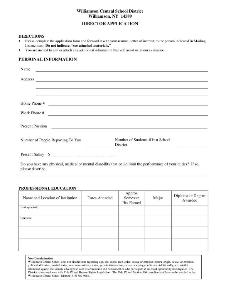 Director application - williamson is a form that needs to be filled out by individuals who wish to become a director of a company called williamson.
