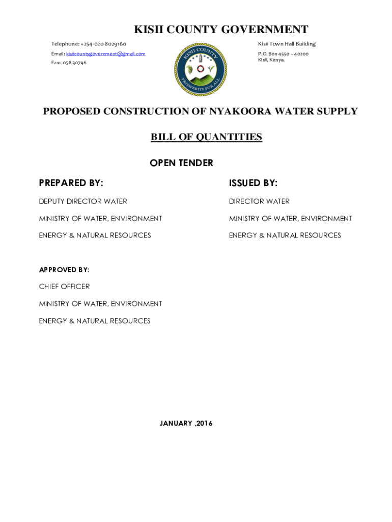 Visit, Kenya. Fax: 05830796PROPOSED CONSTRUCTION OF NYAKOORA WATER