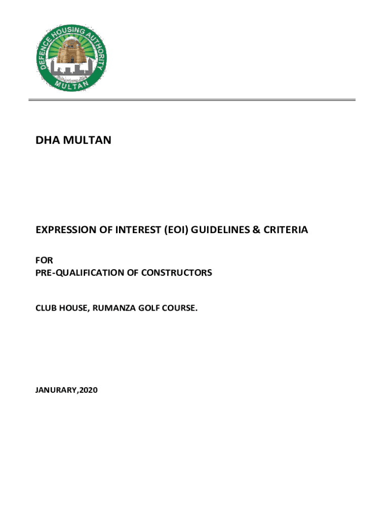 PREQUALIFICATION OF CONSTRUCTORSCLUB HOUSE, ROMANIA GOLF COURSE.JANUARY,2020DEFENCE HOUSING AUTHORITY, MULTANLETTER OF INVITATION