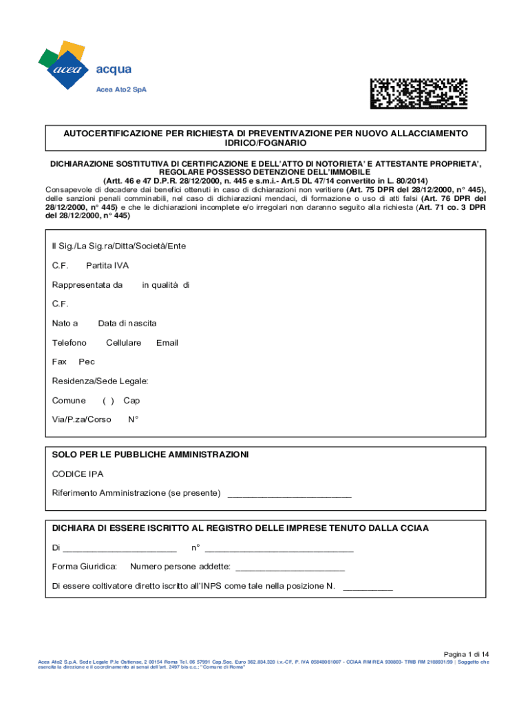 Get the free autocertificazione per richiesta di preventivazione per nuovo ...