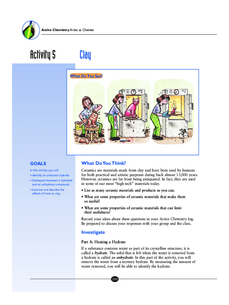 Active Chemistry Artist as ChemistActivity 5Clay 7HAT$O9OU3EEGOALSWhat Do You Think? In this activity you will:Ceramics are materials made from clay and have been used by humans for both practical