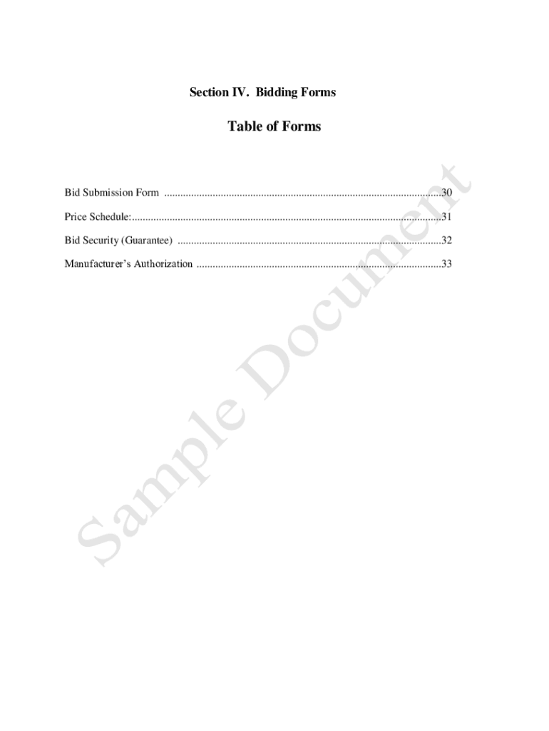 Section IV. Bidding Formidable of Forbid Submission Form .......................................................................................................30 Price Schedule:...................................................................................................................31