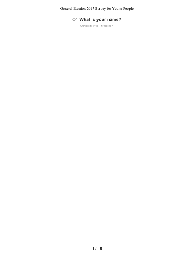 General Election 2017 Survey for Young PeopleQ1 What is your name? Answered: 3,165Skipped: 11 / 15General Election 2017 Survey for Young PeopleQ2 What is your email address? Answered: 3,165Skipped: