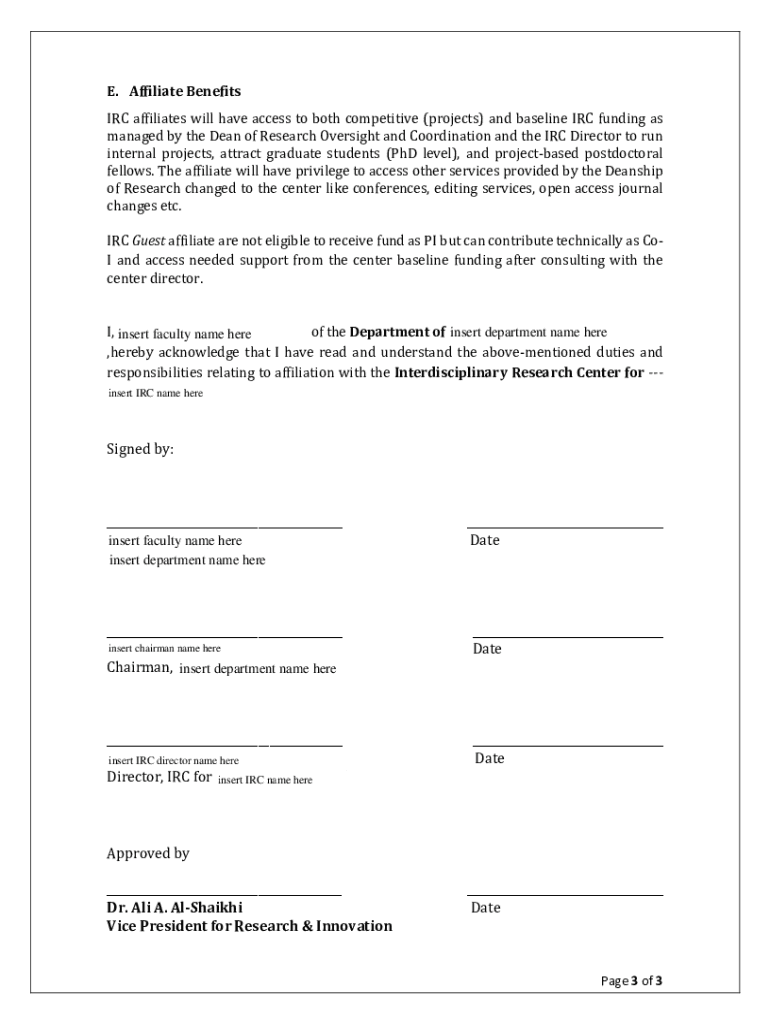 This document confirms the affiliation of faculty members with Interdisciplinary Research