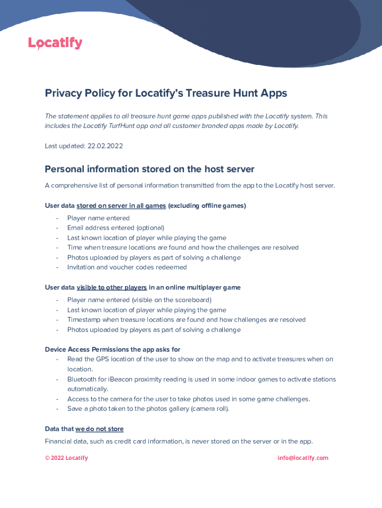 Privacy Policy for Locations Treasure Hunt Apps The statement applies to all treasure hunt game apps published with the Location system. This includes the Location Turf Hunt app and all customer branded