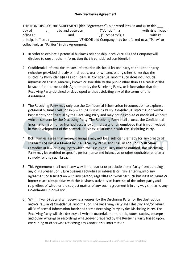 Nondisclosure Agreement THIS NONDISCLOSURE AGREEMENT (this Agreement) is entered into on and as of this ___ day of ___, ___, by and between ___ (Vendor), a ___ with its principal office at ___ and