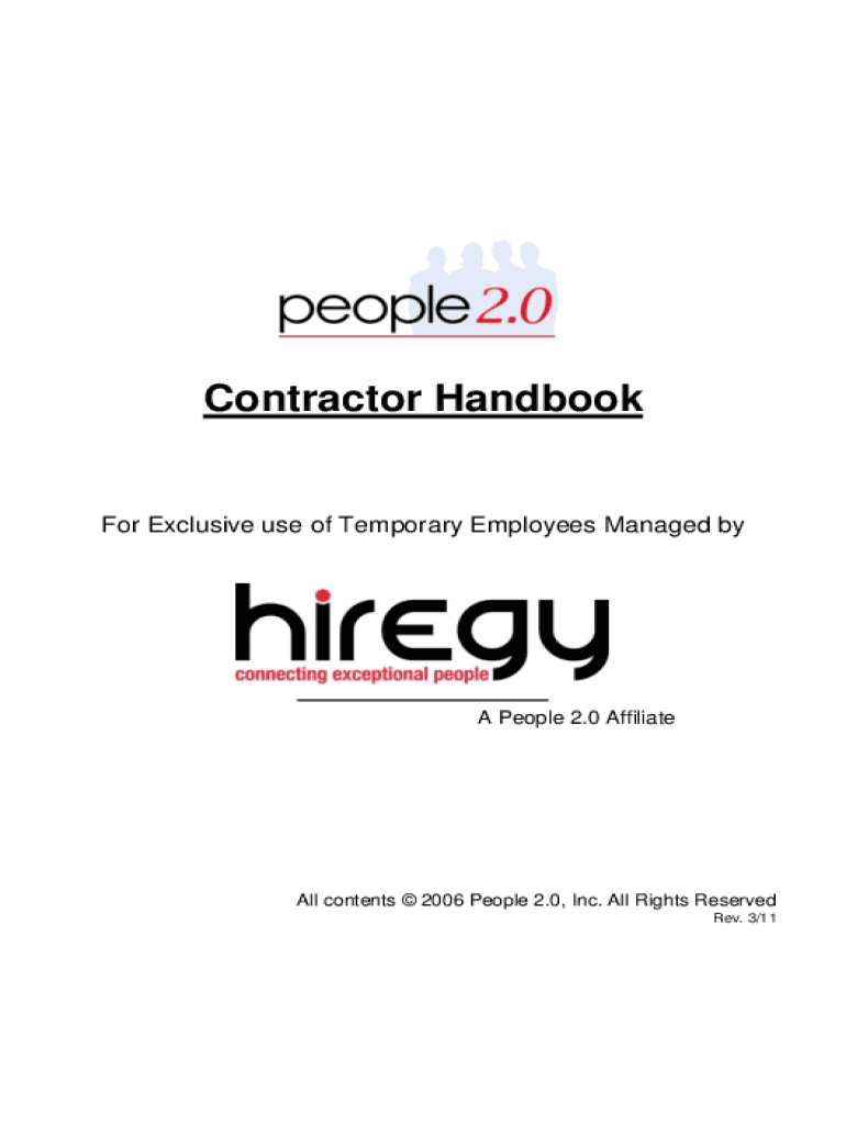 Contractor Handbook Exclusive use of Temporary Employees Managed BYA People 2.0 Affiliate contents 2006 People 2.0, Inc. All Rights Reserved Rev. 3/11Contents Introduction1Purpose of the Handbook