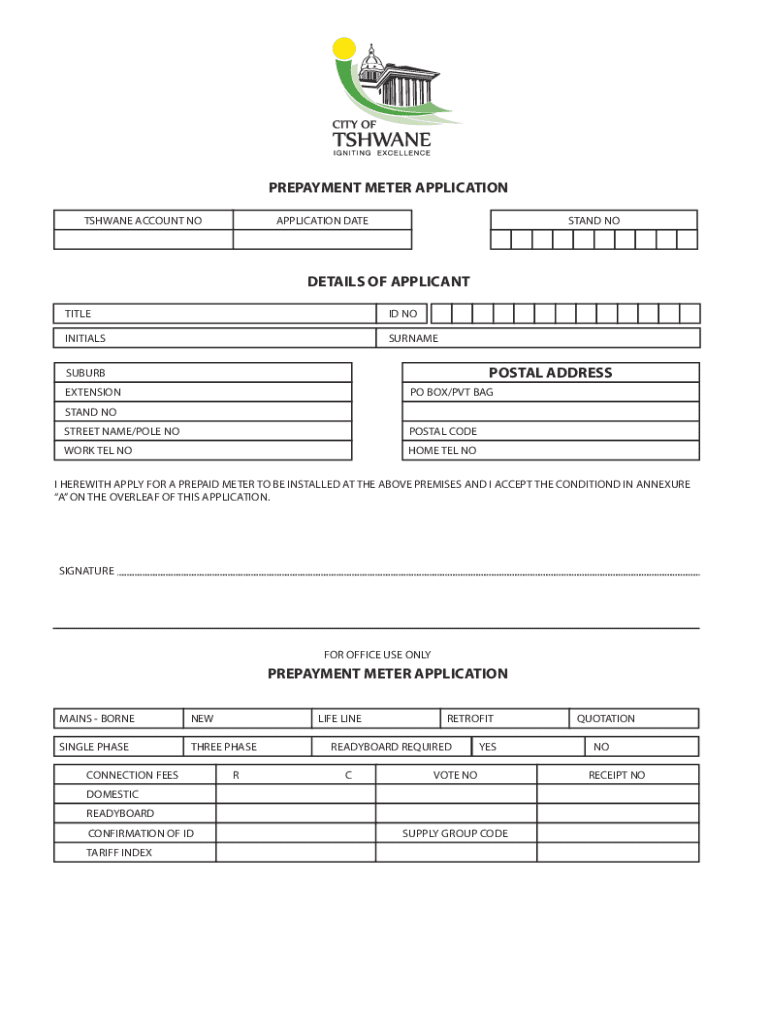 Get the free New Prepaiment meter application - C.O.T ServicesTshwane ...