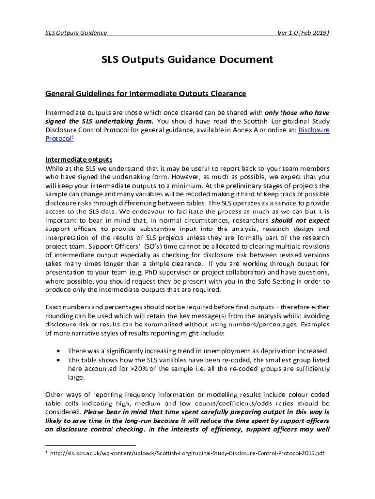 SLS Outputs Guidance 1.0 (Feb 2019)SLS Outputs Guidance Document General Guidelines for Intermediate Outputs Clearance Intermediate outputs are those which once cleared can be shared with only those