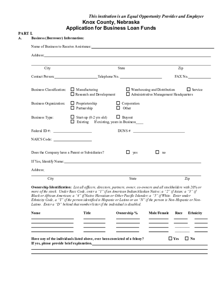 Get the free Knox County, Nebraska Application for Business Loan Funds