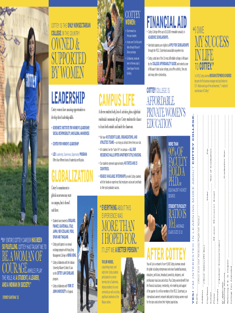 BE A WOMAN OF COURAGE WHILE I PLAY THE ROLE AS A STUDENT, A LEADER, AND A WOMAN IN SOCIETY. SYDNEY SANTANA 15Cottey participates in an annual exchange program with Hang Seng Management College in