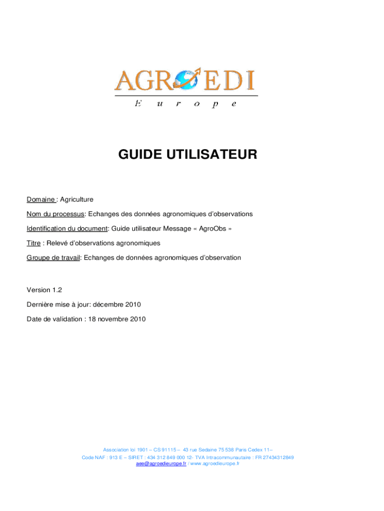 GUIDE UTILISATEURDomaine : Agriculture Not Du processes: Changes DES donnés agronomists observations Identification Du document: Guide utilisateur Message Grooms Title : Elev observations agronomists