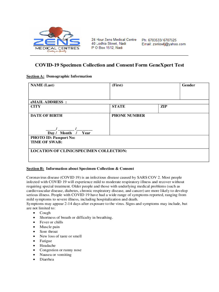 Get the free COVID-19 Specimen Collection and Consent Form GeneXpert ...