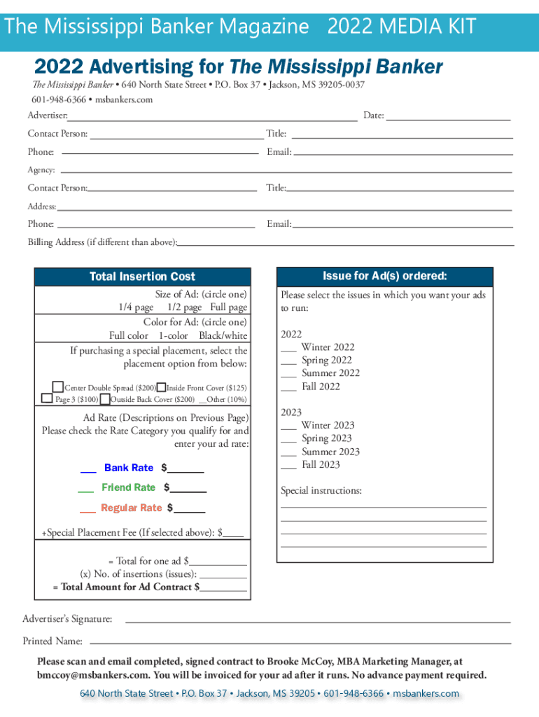 The Mississippi Banker Magazine 2022 MEDIA KIT Advertising opportunities for The Mississippi Banker quarterly magazine:Official Publication of the Mississippi Bankers Association Amanda Manning Marrow,