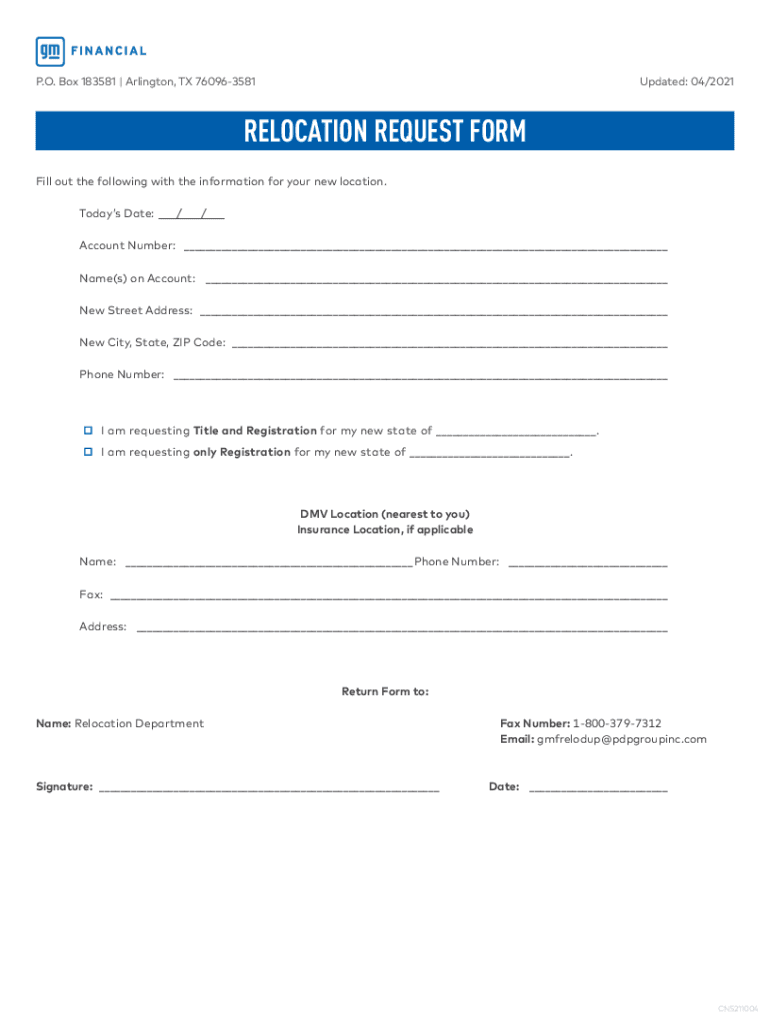 Get the free RELOCATION REQUEST FORM - GM Financial