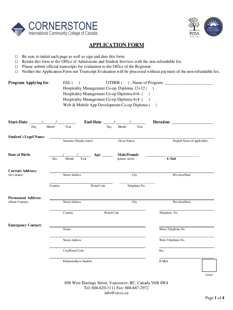 APPLICATION FORM Be sure to initial each page as well as sign and date this form. Return this form to the Office of Admissions and Student Services with the nonrefundable fee. Please submit official