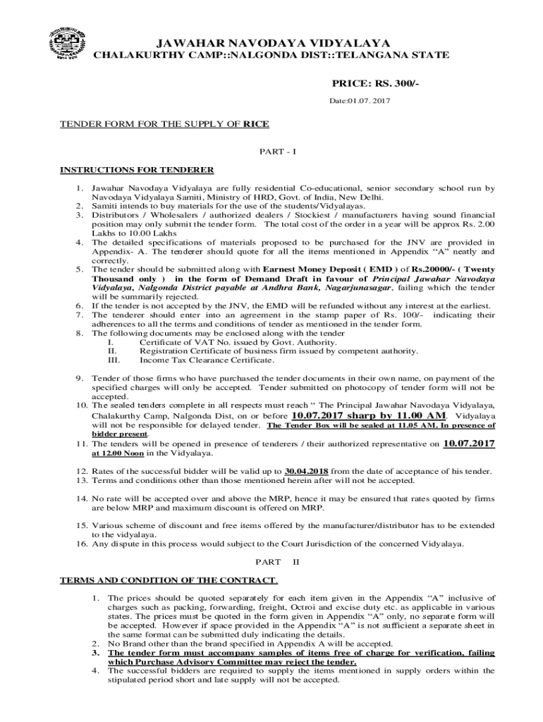 PRICE: RS. 300/Date:01.07. 2017TENDER FORM FOR THE SUPPLY OF RICE