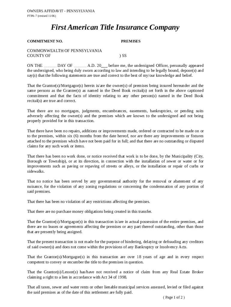What is owner-affidavit-first-american-title-insurance.doc Form?