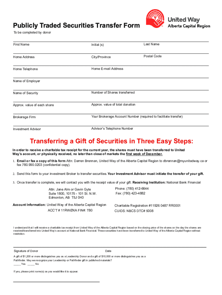 Get the free Gift of Securities - United Way Alberta Capital Region