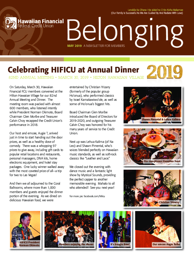 Lanka Key Ghana I KE Alaina O KE Aloha Madame (Our Family Is Successful As We Are Guided By And Radiate With Love)Belonging MAY 2019 A NEWSLETTER FOR MEMBERSCelebrating HIF ICU at Annual Dinner 82ND