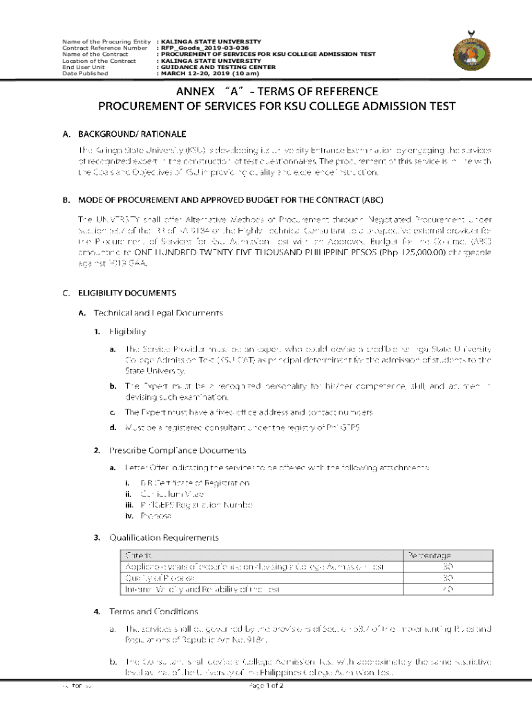 Get the free Name of the Procuring Entity - Kalinga State University