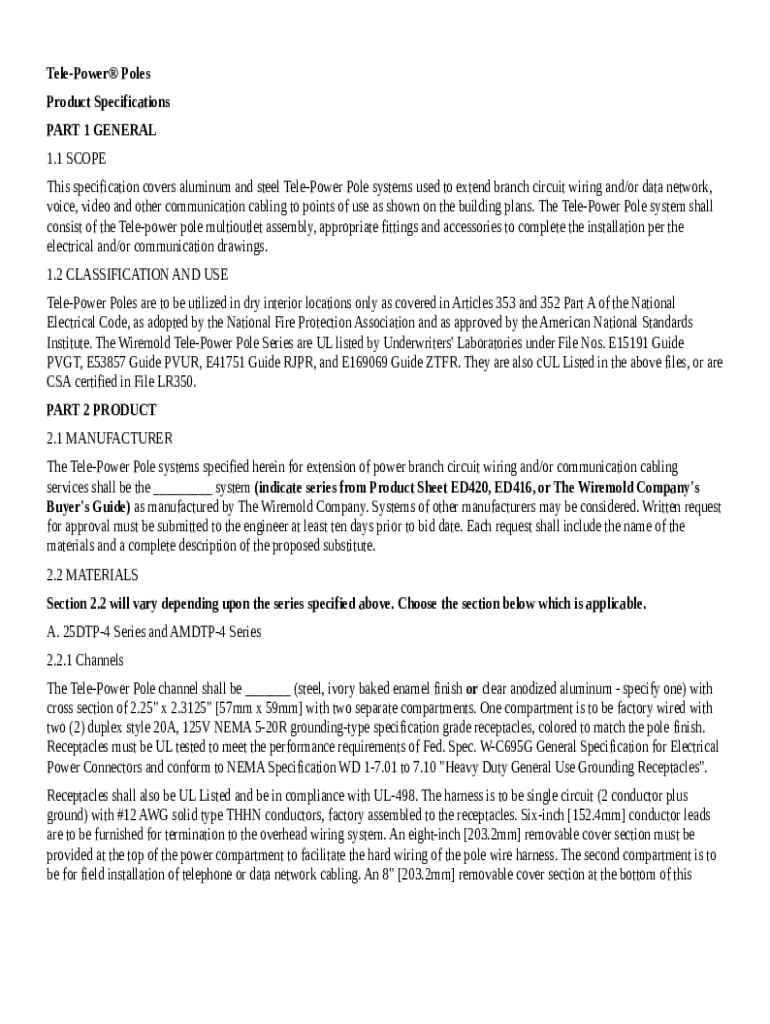 Tele-Power Poles Product Specifications - Elliott Electric Supply template instructions