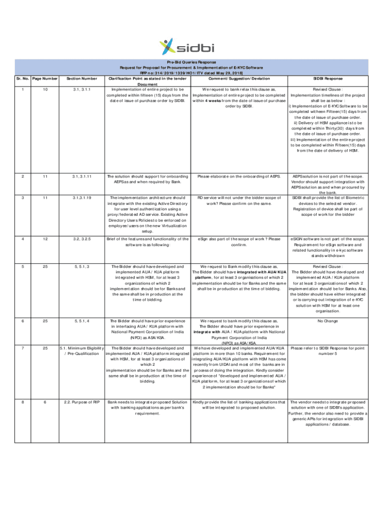 Sr. No. Page NumberSection NumberPreBid Queries Response
