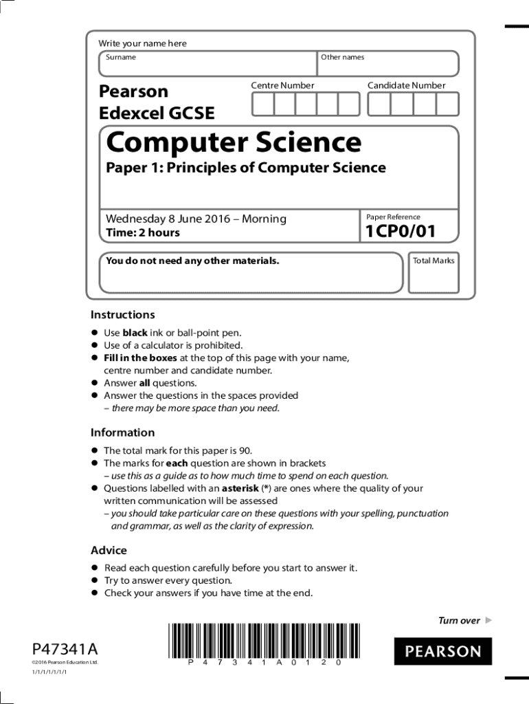 Edexcel GCSECentre NumberCandidate Supercomputer SciencePaper 1: Principles of Computer Science