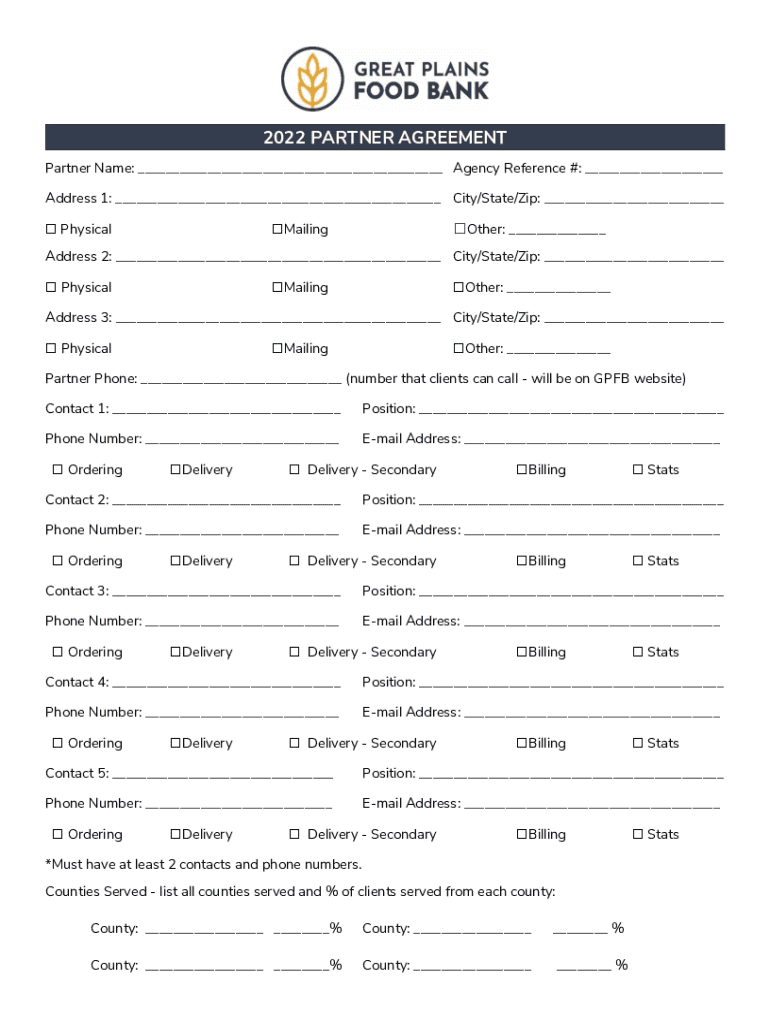 2022 PARTNER AGREEMENT Partner Name: ___ Agency Reference #: ___ Address 1: ___ City/State/Zip: ___ PhysicalMailingOther: ___Address 2: ___ City/State/Zip: ___ PhysicalMailingOther: ___Address 3:
