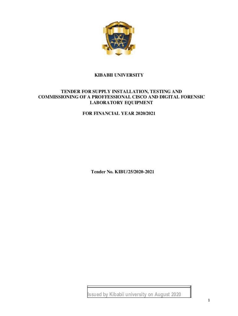 FOR FINANCIAL YEAR 2020/2021Tender No. KIB/25/20202021Issued