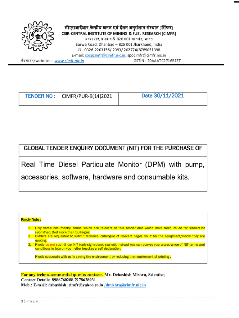 ) (CSIRCENTRAL CENTRAL INSTITUTE OF MINING & FUEL RESEARCH (CIM FR), & 826 001, BARDA Road, Dhanbad 826 001 Jharkhand, India : 0326 03262203156/ 2093/ 202774/8789051398 Email: cospcimfr@cimfr.nic.in,