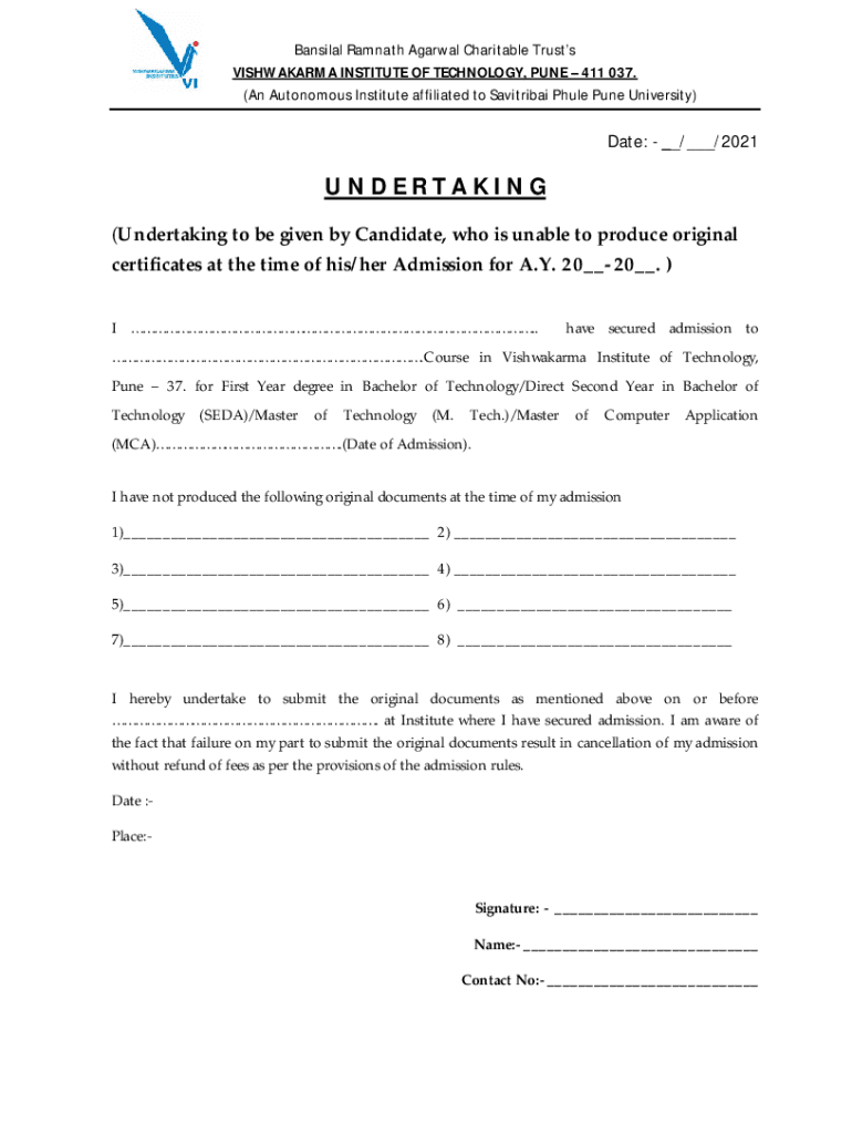 (An Autonomous Institute affiliated to Savitribai Thule Pune University)Date: __/___/2021UNDERTAKING