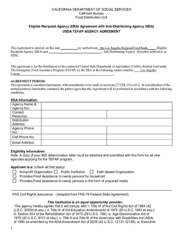 Eligible Recipient Agency (ERA) Agreement with Distributing Agency (SDA)