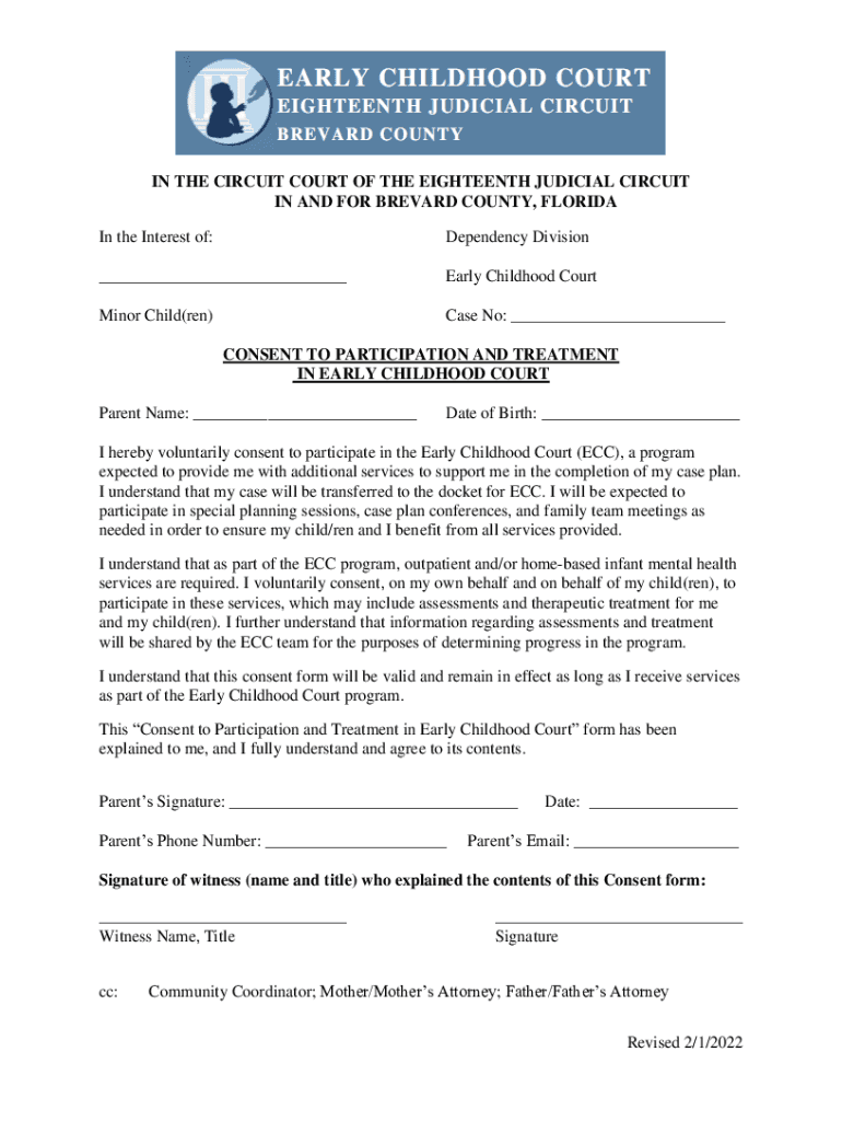 IN THE CIRCUIT COURT OF THE EIGHTEENTH JUDICIAL CIRCUIT IN AND FOR BREVARD COUNTY, FLORIDA In the Interest of:Dependency Division___Early Childhood Courtier Child(men)Case No: ___ CONSENT TO PARTICIPATION