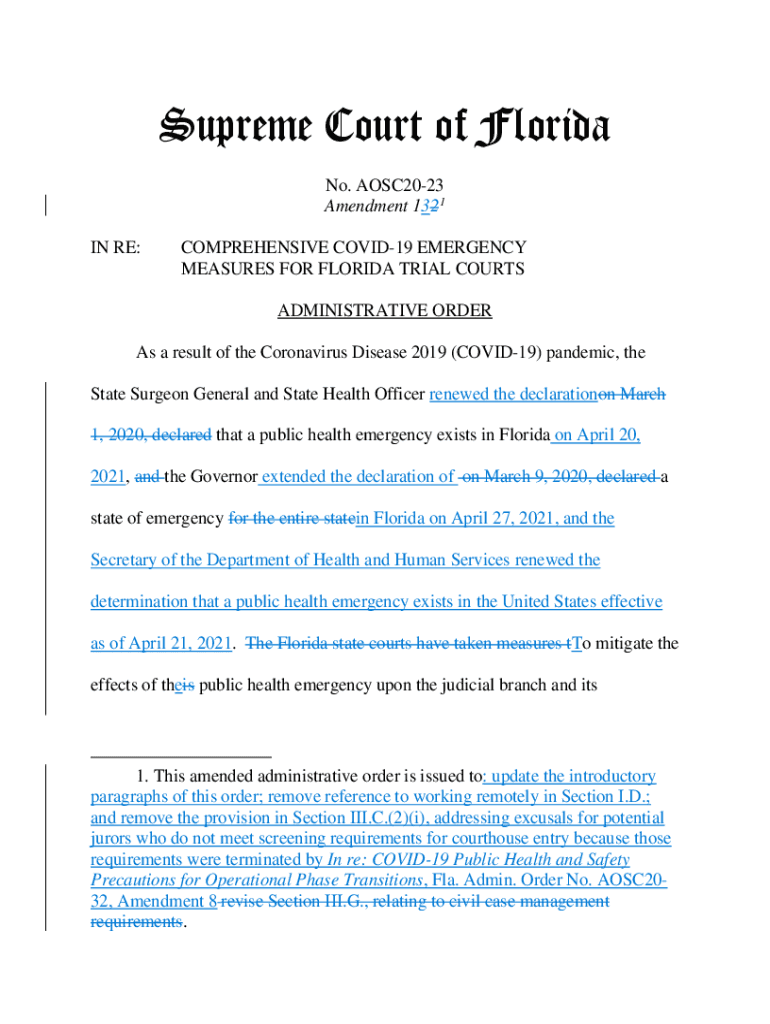 Supreme Court of Florida No. AOSC2023 Amendment 1321 IN RE:COMPREHENSIVE COVID-19 EMERGENCY MEASURES FOR FLORIDA TRIAL COURTS ADMINISTRATIVE Orders a result of the Coronavirus Disease 2019 (COVID-19)