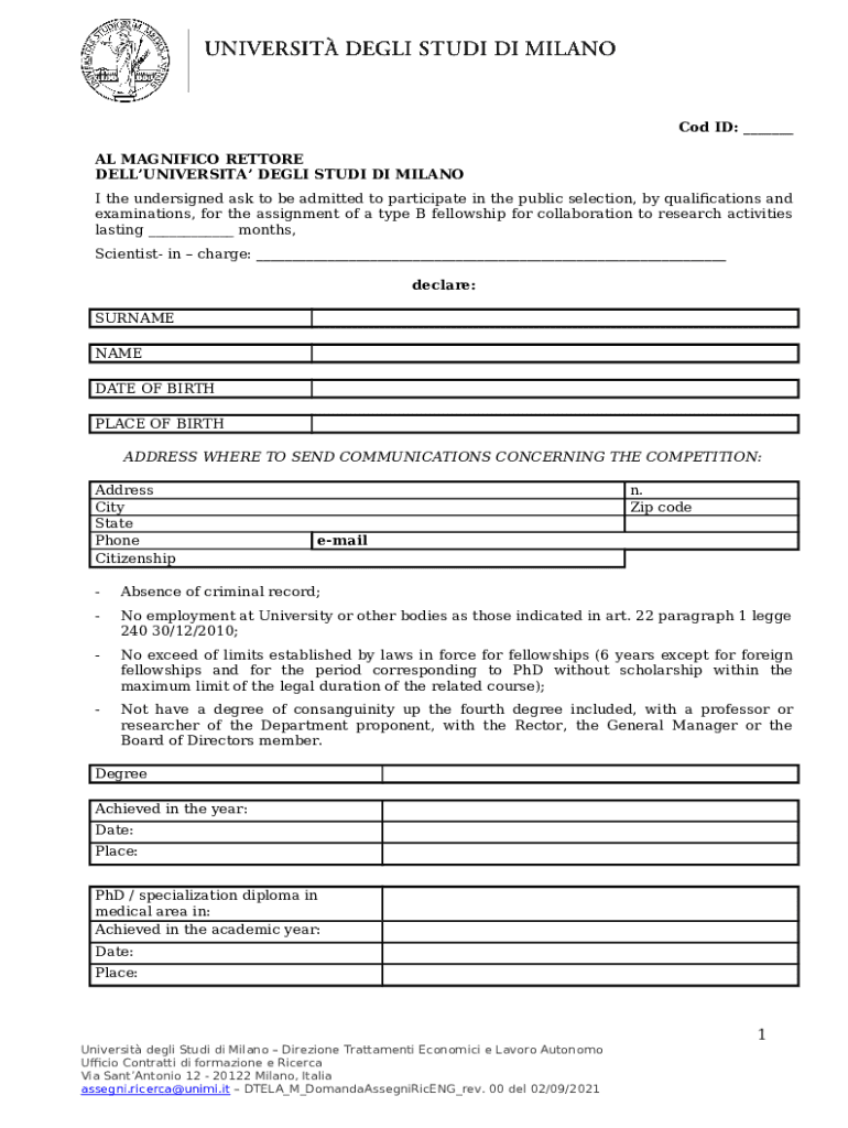 The Application - Unimi is a document required to be submitted to the relevant address in order to provide certain information. It has to be filled-out and signed, which may be done in hard copy, or with the help of a particular software like PDFfiller. This tool helps to fill out any PDF or Word document directly from your browser (no software requred), customize it according to your purposes and put a legally-binding electronic signature. Right away after completion, the user can send the Application - Unimi to the appropriate recipient, or multiple individuals via email or fax. The template is printable as well thanks to PDFfiller feature and options presented for printing out adjustment. In both electronic and physical appearance, your form will have got organized and professional outlook. You may also save it as the template to use later, so you don't need to create a new document over and over. All you need to do is to customize the ready sample.