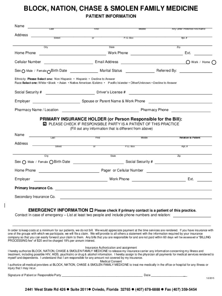 Get the free Block, Nation, Chase, & Smolen Family MedicineOviedo FL