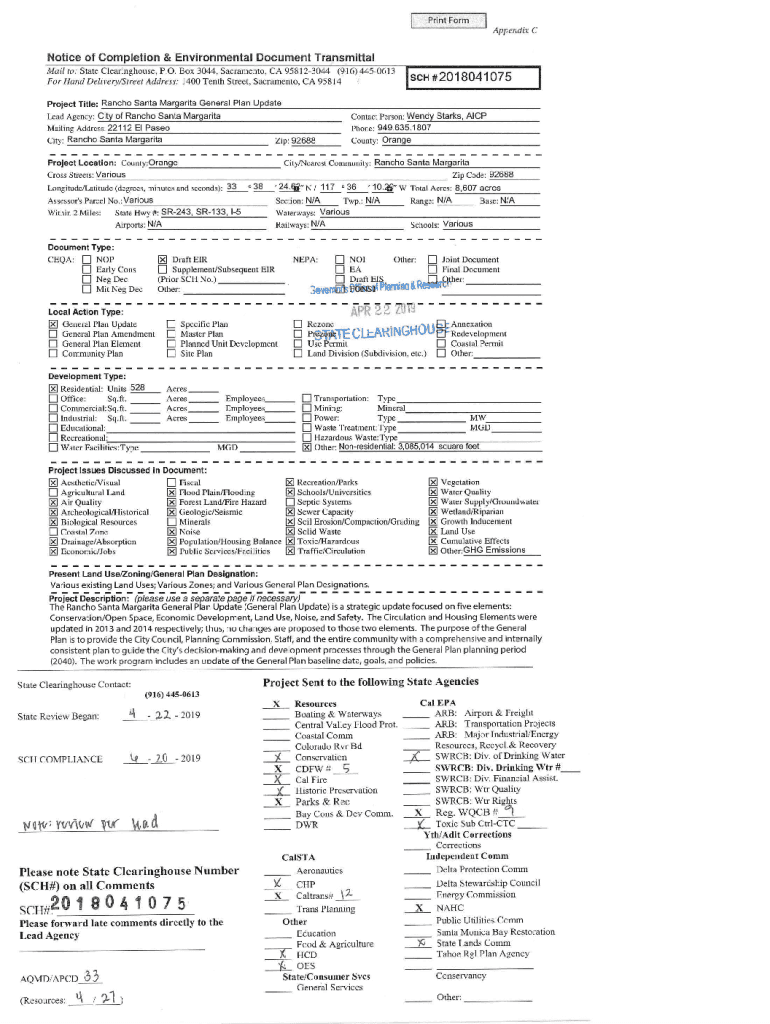 Print Form Appendix Notice of Completion & Environmental Document Transmittal Mail 10: State Clearinghouse, P.O. Box 3044, Sacramento, CA 958 123044 (9 16) 44506 13 For Hand Delive1y/Stree1Address: