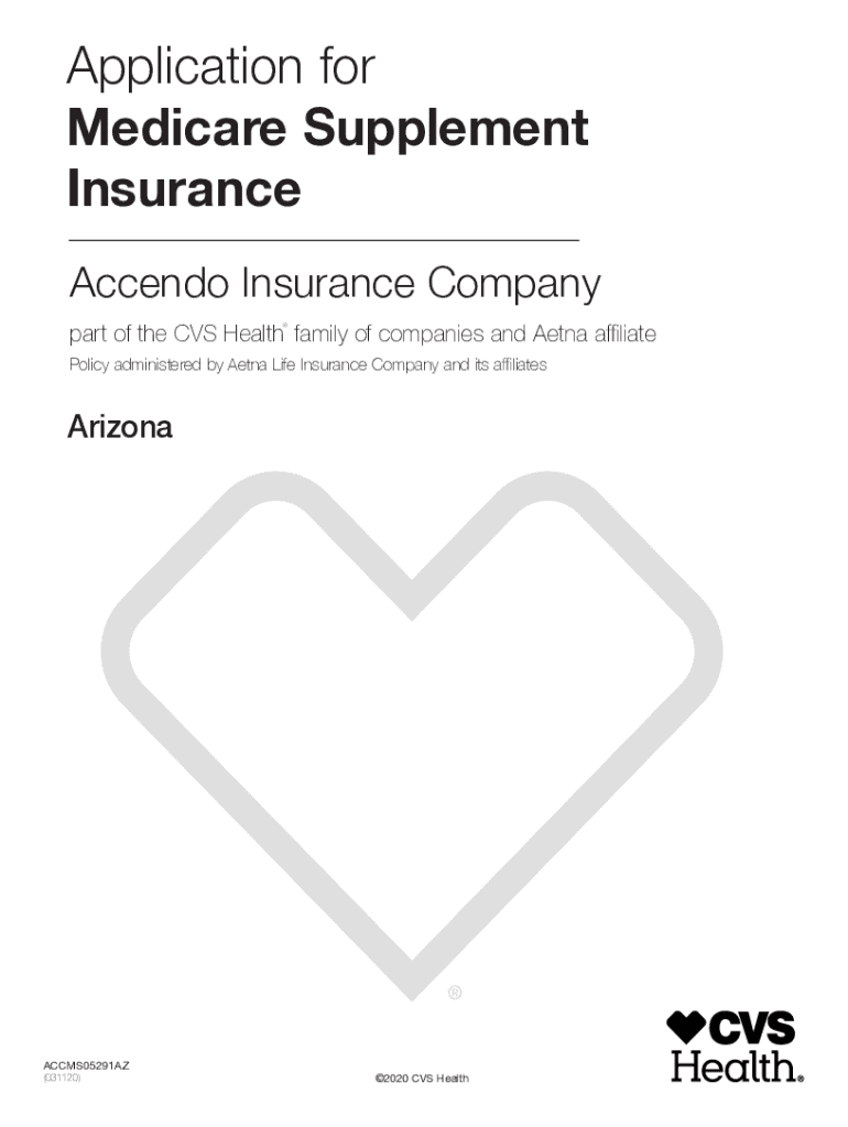 Application for Medicare Supplement Insurance Accent Insurance Company part of the CVS Health family of companies and Aetna affiliate Policy administered by Aetna Life Insurance Company and its affiliatesArizonaACCMS05291AZ
