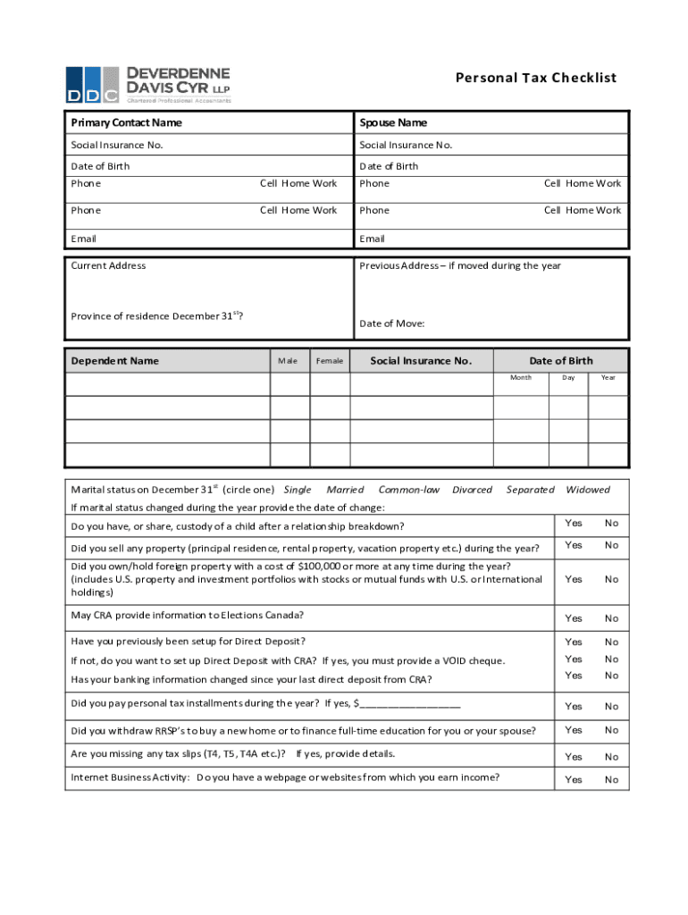 Personal Tax Checklist