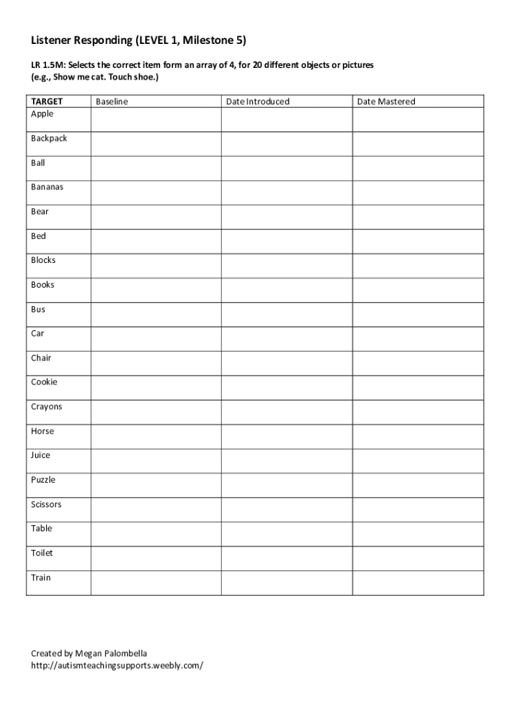 LR 1.5M: Selects the correct item form an array of 4, for 20 different objects or pictures