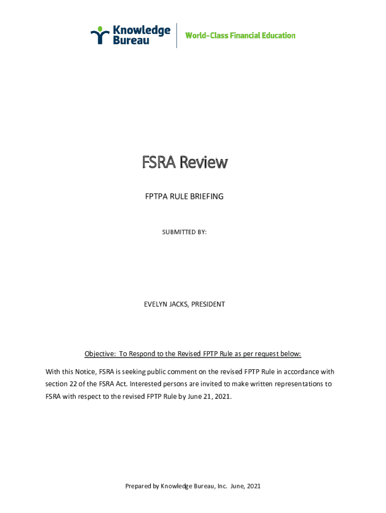 FSA Review FP TPA RULE BRIEFINGSUBMITTED BY:EVELYN JACKS, PRESIDENTObjective: To Respond to the Revised FTP Rule as per request below: With this Notice, FSA is seeking public comment on the revised