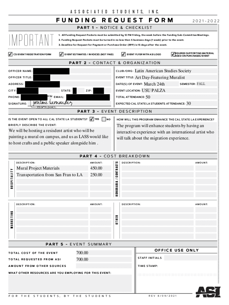 An S O C I A T E DS T U D E N T S, I N C.FUNDING REQUEST FORM20212022PA R T 1 N OT I C E & C H E C K L I S TIMPORTANT1. All Funding Request Packets must be submitted by 12 PM Friday, the week before