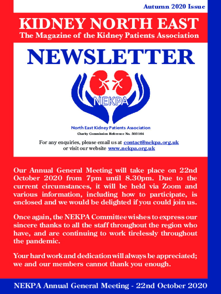 Autumn 2020 IssueKIDNEY NORTH EAST The Magazine of the Kidney Patients AssociationNEWSLETTER NEPAL North East Kidney Patients Association Charity Commission Reference No. 503164For any inquiries,