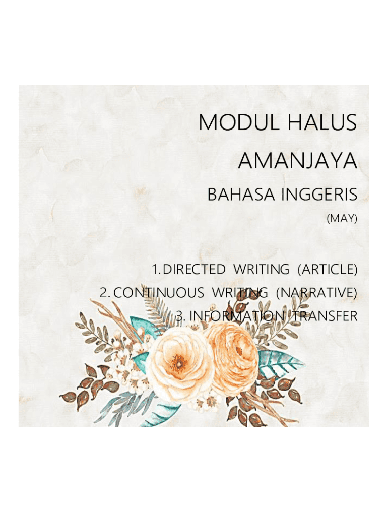 MODEL HALLS AMANDA BAHAMA INERIS (MAY)1. DIRECTED WRITING (ARTICLE) 2. CONTINUOUS WRITING (NARRATIVE) 3. INFORMATION TRANSFERINFORMATION TRANSFER ___ This question is given in Section B of Paper 2.
